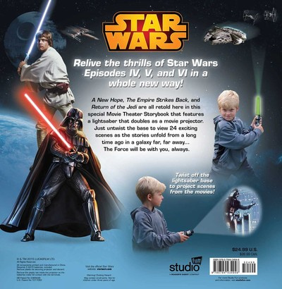 The original classics Star Wars: A New Hope; The Empire Strikes Back; and Return of the Jedi are all retold here in this special movie theater storybook that features a movie image projector. Just untwist the base to view 24 exciting scenes as the stories unfold from a long time ago in a galaxy far, far away.... The Force will be with you, always.