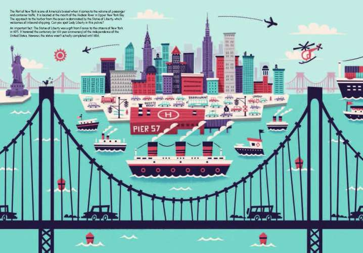 Travel to the world's ports and you'll learn much about a country's people, culture, and industry. Ports are thriving hubs of activity, filled with an endless variety of boats, cargo, and workers. This unique book takes young readers on a journey around the globe's ports and features some of the world's most fascinating destinations. In colorful spreads, readers are given insights into each port city: What are they eating in Hong Kong? What lives on the Nile River? What do the boats of Venice look like? From flora to fauna and from tropical climates to polar regions, this book is packed with vibrant, 1950s-era inspired illustrations. As entertaining as it is educational, this book gives children a window into a new way of seeing the world.